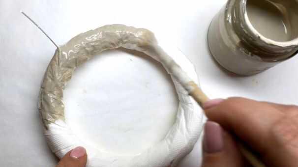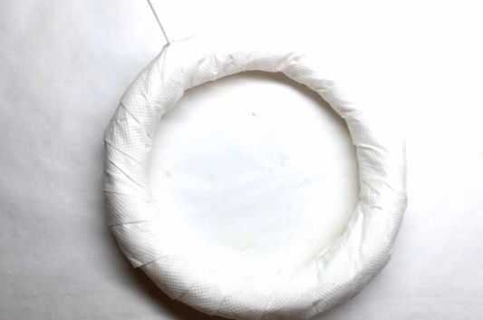 Con el alambre, hacer un anillo grande y cubrir con tiras de papel higiénico.