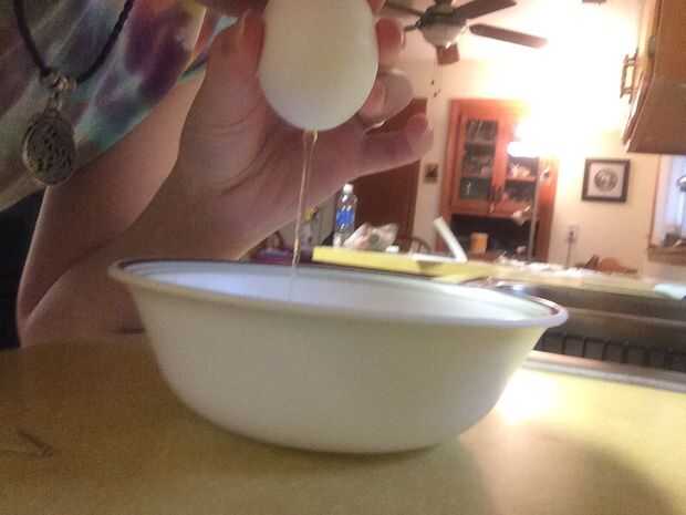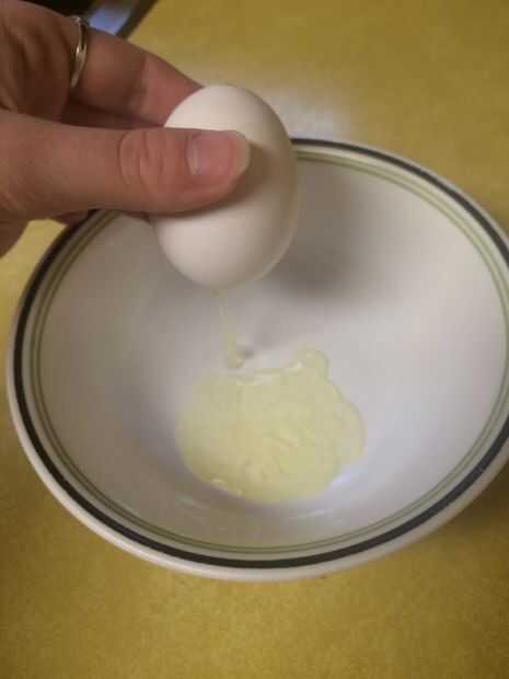 Obtener su huevo y hágale un agujero pequeño en ambos extremos, y luego soplar en un extremo que la yema fuera de él en su tazón de fuente