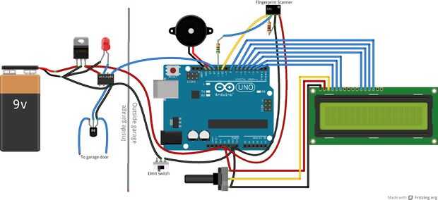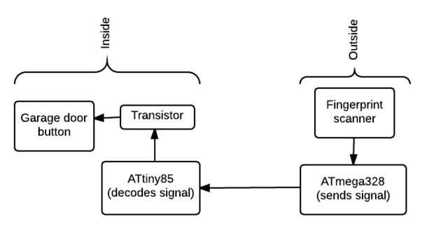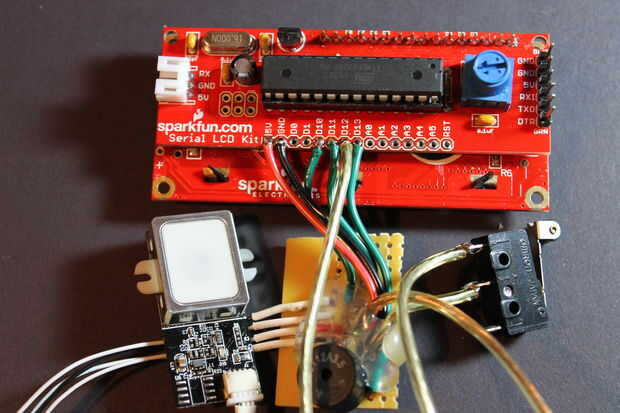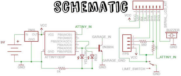El serie kit LCD vendido por Sparkfun viene con un ATmega328 para controlar el LCD. El ATmega tiene potencia de procesamiento extra para ser utilizado para otras tareas además de la pantalla LCD. Debido a esto, podemos usarlo como un Arduino para comunicarse con el escáner de huella digital, enviar un comandos ATtiny85, controlar el LCD y utiliza un zumbador para jugar tonos.