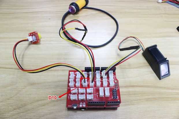 Así que si queremos hacer a los demás permiso de la "clave", tenemos que programar un botón para volver a leer. Ahora cuando presionamos el botón, puede grabar la huella digital, (Nota: registro huella digital se debe dividir en dos pasos: registrar y confirmar, por lo que necesita presionar el dedo en el sensor dos veces). Un cable 3 PIN Crowtail y un botón Crowtail hará este trabajo bien cuando conecto a D10.