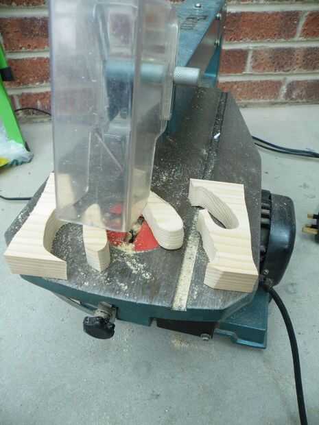 Hecha de restos de madera (pino, 21mm de espesor), utilizando una sierra de contornear, pegamento, un cuchillo y una herramienta rotatoria con un poco de lija y la broca "fresa de dentista".