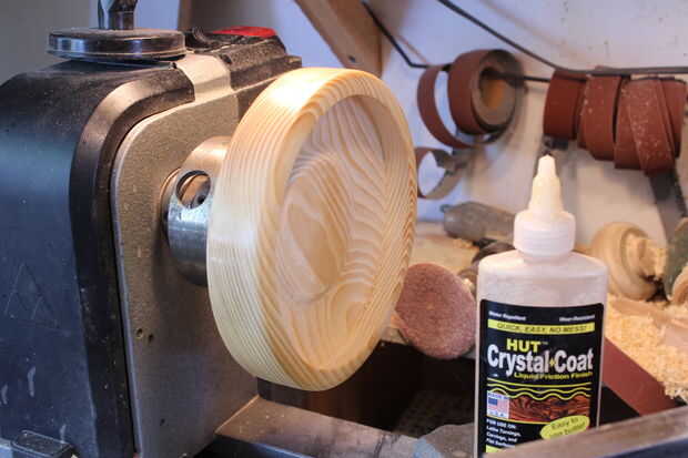 Al terminar de lijar ahora puede aplicar la opción de acabado. Utilicé un pulimento de fricción para el exterior y borde de la cara entonces rocía minwax polycrylic (luz 2 manos lijado intermedio) en la parte inferior.