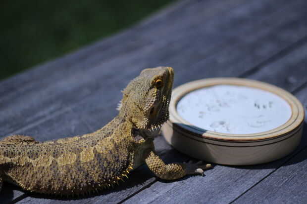 Mi licencia de niños grandes-huellas por todas partes (los grandes no lindos), así que pensé que tal vez los perros... He intentado agarrar el primer perro y es como si supieran lo que estaba haciendo y encontraron varios puntos de escondite en la casa. Así que cogí a Goliat, él está relajado lo suficiente y el novio lo ama muy mucho. Es que por ver un dragón barbudo este producto terminado. :)