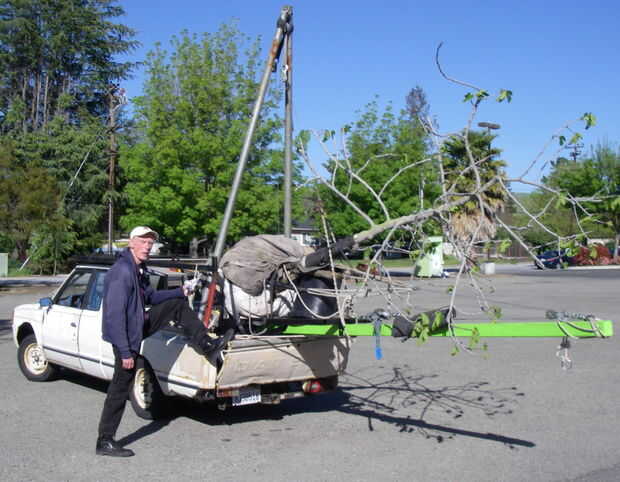 Mi padre y me consiguió una higuera y un árbol cerezo de James en Fremont. Él está haciendo espacio para una adición a su casa. Utilizamos el árbol Dolly y a-frame. Fue mucho trabajo pero satisfactorio.