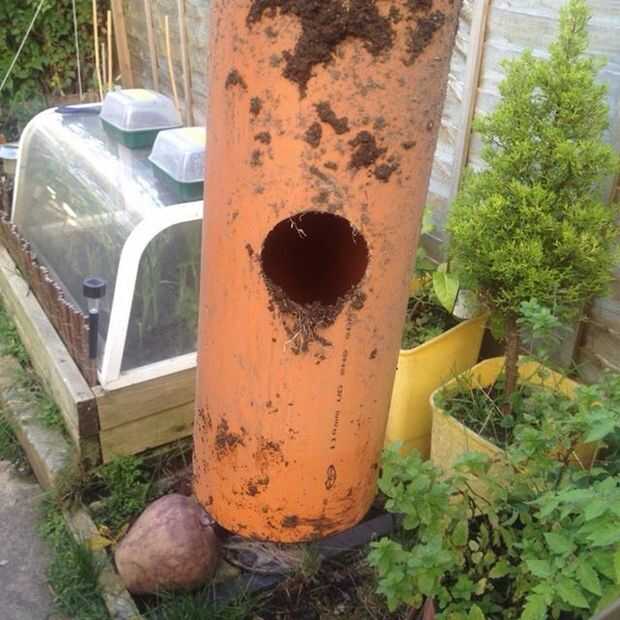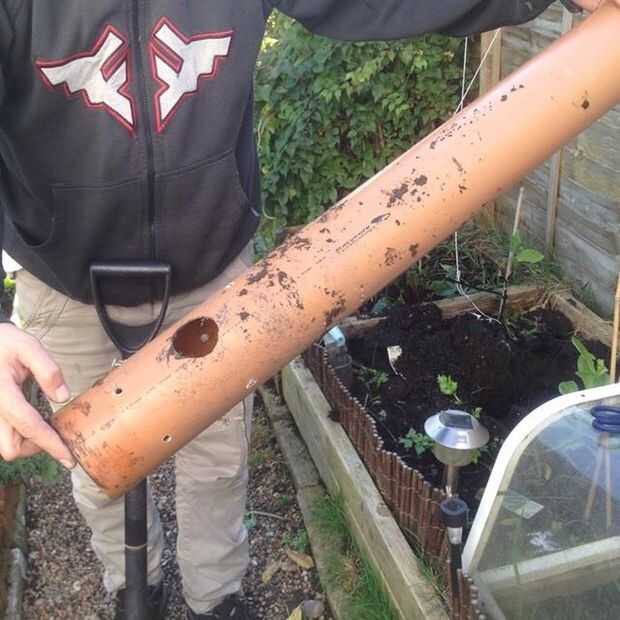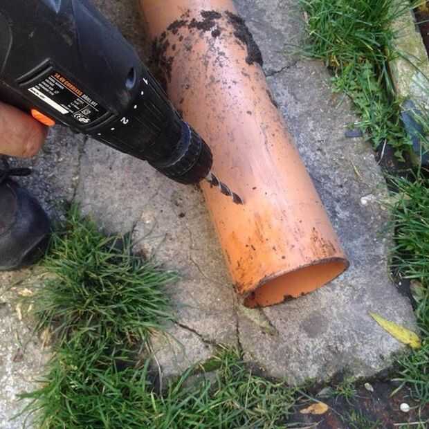 Usar su taladro y broca para hacer un montón de pequeños agujeros en la parte inferior 30 cm de la tubería Usar el accesorio de agujero grande para hacer unos agujeros más grandes si usted tiene una
