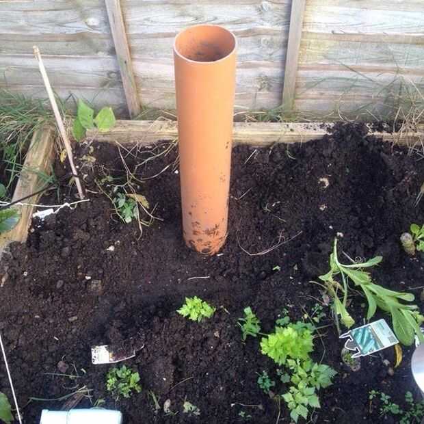 Dig un snd profunda de 30 cm sobre todo asegure el tubo en posición vertical