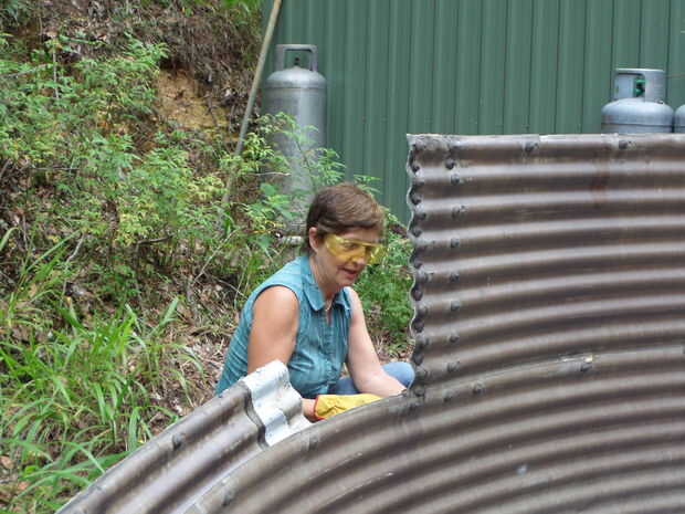Por supuesto, al llegar a la última fila, va a también tiene que quitar la parte inferior del tanque. Recibió un paquete de 10 discos de amoladora ¿verdad?