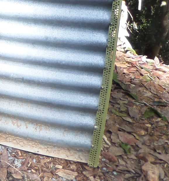 Entonces me encontré con tiras de metal usado para las esquinas de la forma al yeso. Era $1 por metro y era convenientemente previamente perforado. Es mucho más delgado que el otro material de la esquina así que sobre compensado con tornillos.