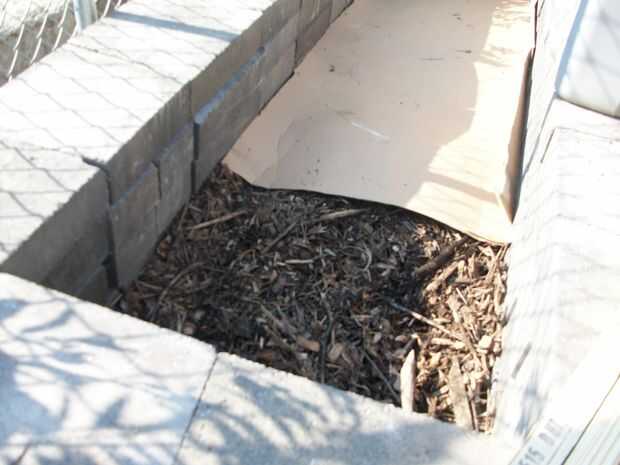Paso 3.  Coloque cartón sin cera encima de mantillo.  El mantillo y cartón ayuda a enfriar la cama como una capa entre el actual suelo y asfalto.