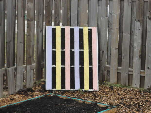 Pintado del patín para alegrar el lugar. Llena de compost y será cada vez más hierbas en.