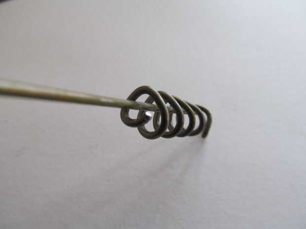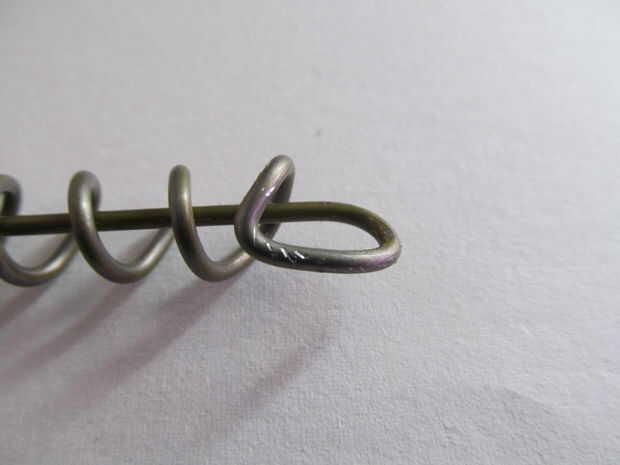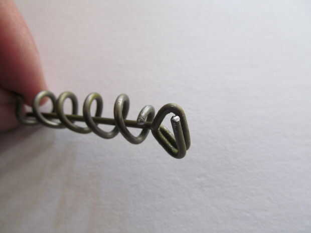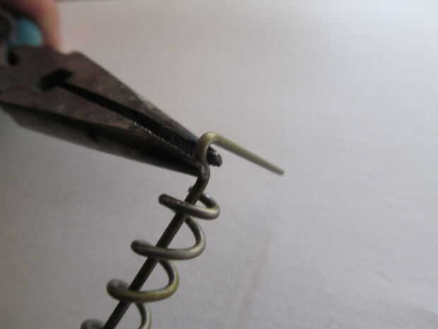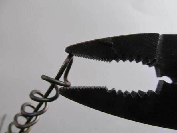 La otra curva importante es la cabeza de los peces. La bobina más superior tiene que ser doblada hacia la parte superior. Esto le da a la parte posterior de la cabeza una forma de gancho para el paracord atar alrededor. Ver las fotos.