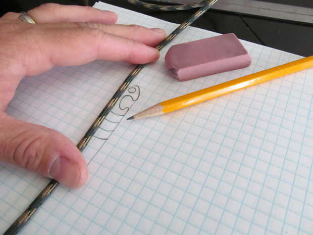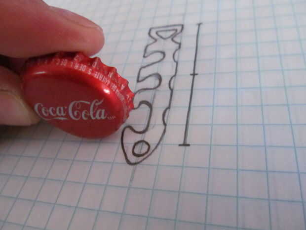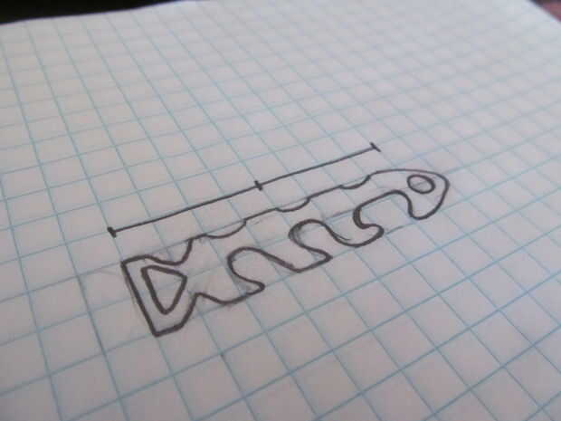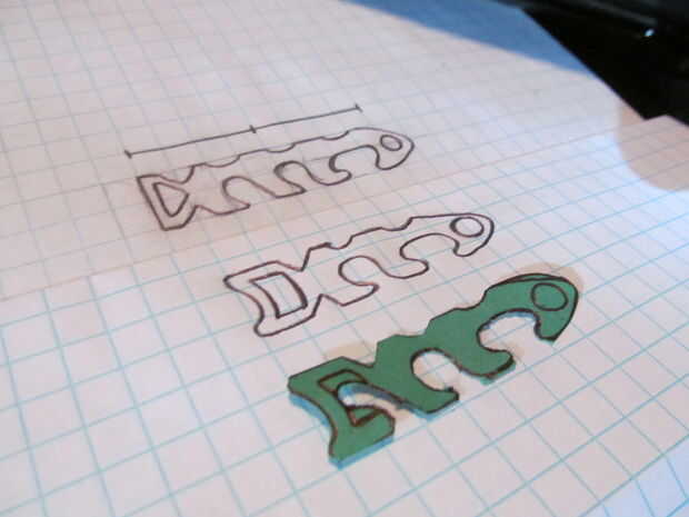So now I know this thing works. Tiempo para hacerla parecer legítimos. Coloqué el prototipo de alambre en papel milimetrado y bosquejó un modelo. Aquí es donde decidí que era demasiado largo. Terminó como ½ "x 2". También ponga en un ojo y cambiar el cuento. Aunque tuve que resolver esto haciendo un modelo de papel.