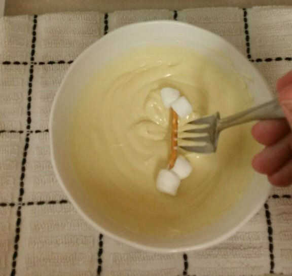 Gancho agarrador de la horquilla y se usa para bajar su hueso en el chocolate.