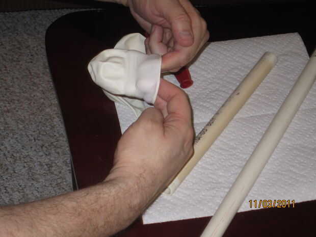 Coge un globo, haga palanca abierta con su dedo índice y medio y empujar dos alagodón encima de toallas de papel en él.