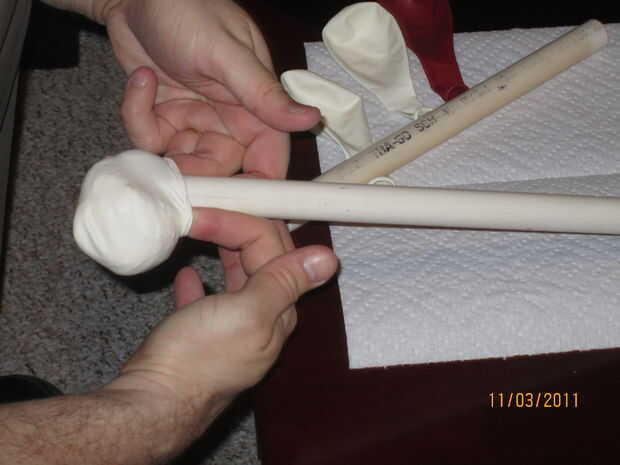 Tirar el balón sobre el tubo de plástico. Tire hacia abajo como usted puede.