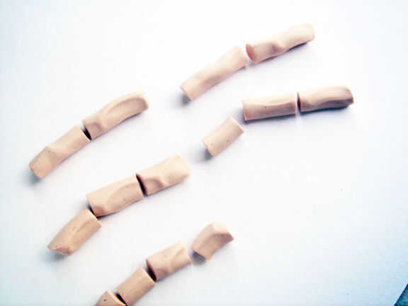 6 cortar 2 de los 4 en 3rds y 1 de las 4 secciones en 4tas (muestran 2 de las secciones cortadas por la mitad no me gustó que largo y decidió no usarlas)