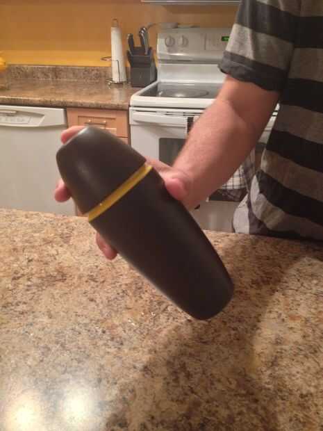 Llene la coctelera la mitad con hielo, cubitos de hielo de aproximadamente 5-7.
