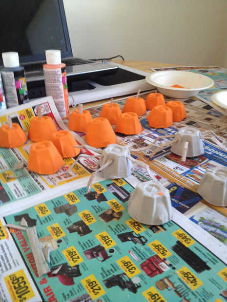Cortar el huevo cavidades de cartón individuales y pintar naranja, deje seco