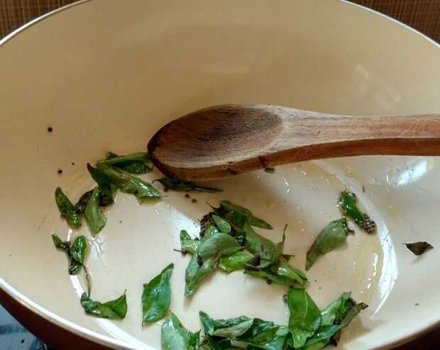 A continuación añadir el jengibre, ajo, chiles verdes, cebolla y hojas de curry. Sofría hasta que la cebolla se cocina ligeramente. No necesita dorarlas. Agregue el polvo de la cúrcuma y garam masala en polvo.