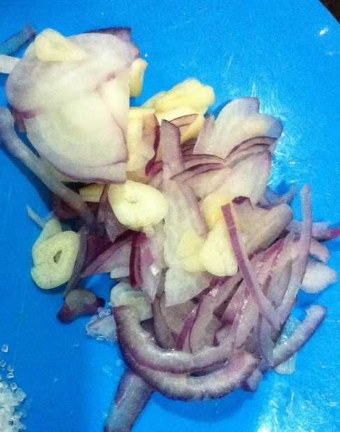2. Limpie la veges. Picar para alrededor de 1/2 taza por cada vege. Se trata de la comida para 2 a 3 personas.