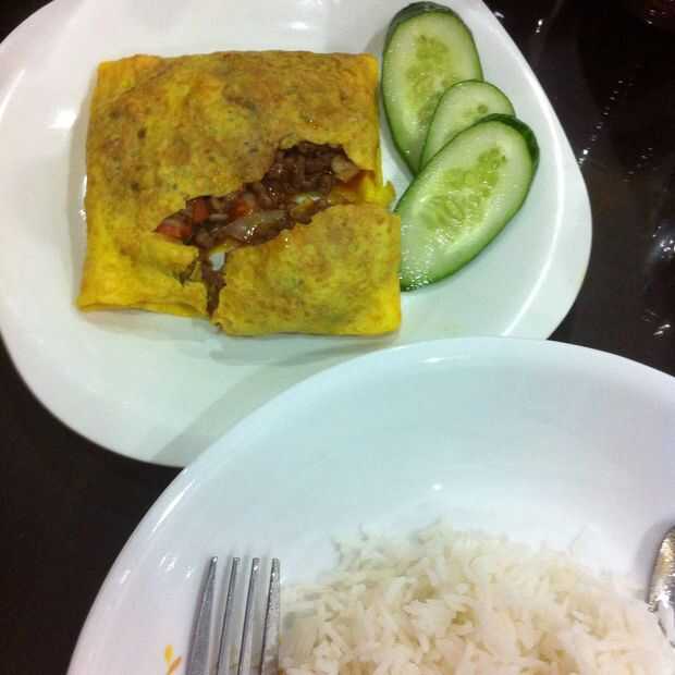 Carne huevo frito arroz
