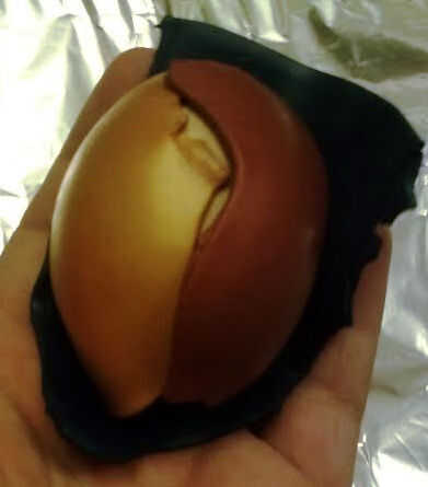 Después de rodar hacia fuera de la arcilla a cualquier grosor te gusta (no va con la capa más delgada, sí guarda barro pero que estás haciendo esa cosa de "hacer las cosas más difíciles a ti mismo") Coloque las piezas sobre el huevo para ver si tiene suficiente arcilla para trabajar con. Si tienes un poco de exceso está bueno para ir. Si no tienes suficiente, o los colores no están en las proporciones que te gusta, ahora es el momento para arreglar eso.