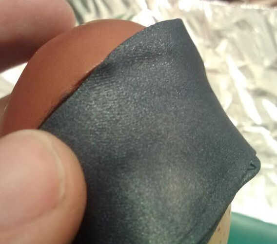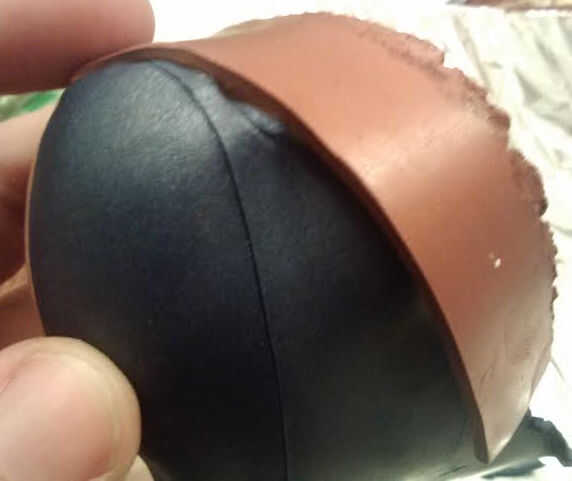 Versión 2: Esto funciona mejor cuando se tiene un borde limpio ya en el huevo y un trozo de arcilla que necesita ser cortado para caber en la mano. Colocar la mano sobre el borde de donde usted quiere ir a frotar ligeramente en él para hacer una impresión de la forma que necesita. Lo levante y corte a lo largo de la marca que dejó en él.
