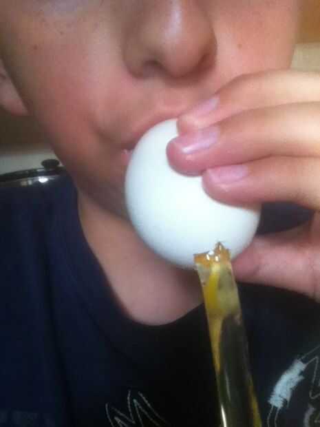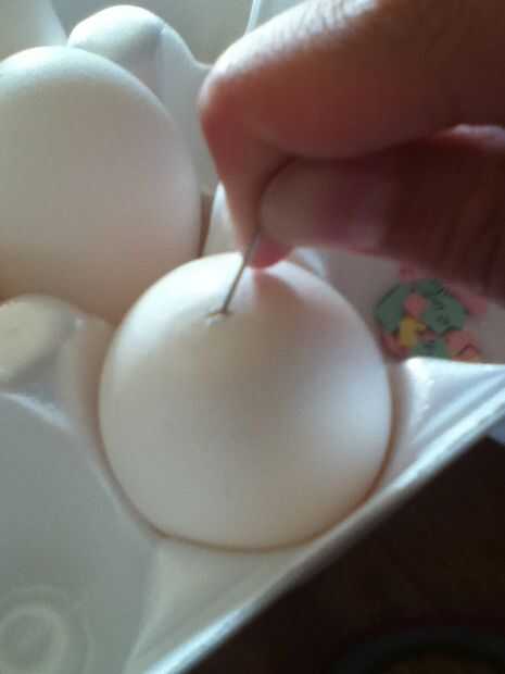 Deben meter un agujero en la parte superior del huevo con una aguja y 1 Mantenga más grande en el otro extremo. El agujero grande debe ser tamaño de moneda de diez centavos. En el pequeño agujero lo limpie y soplar las agallas en un recipiente.
