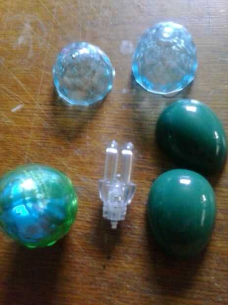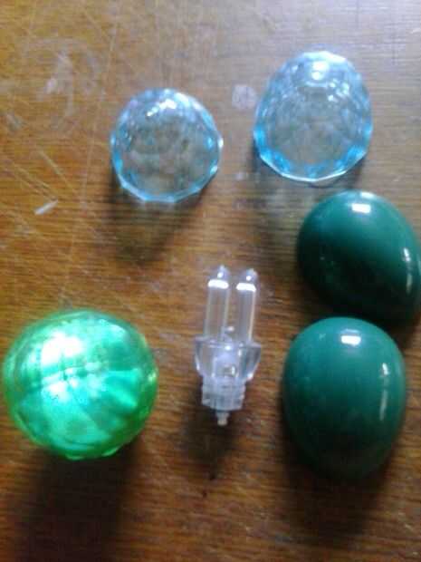 Aquí está el huevo destellante acabado junto a sus ' componentes. Puede hacer una decoración de la buena mesa u otra prop. Una canasta de éstos sería una vista espectacular.