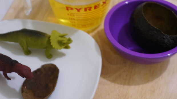 Si no desea utilizar un dinosaurio, puede cortar el aguacate como la última imagen en su lugar.