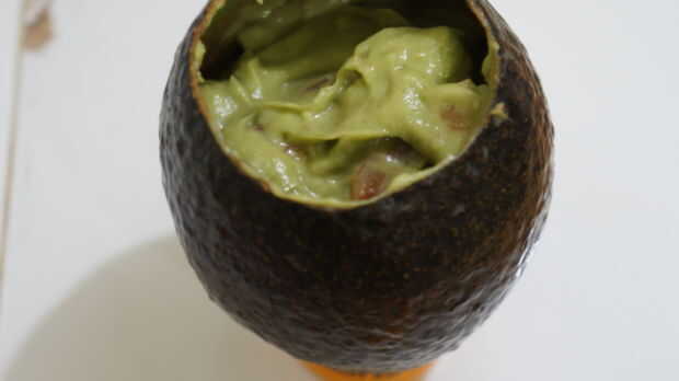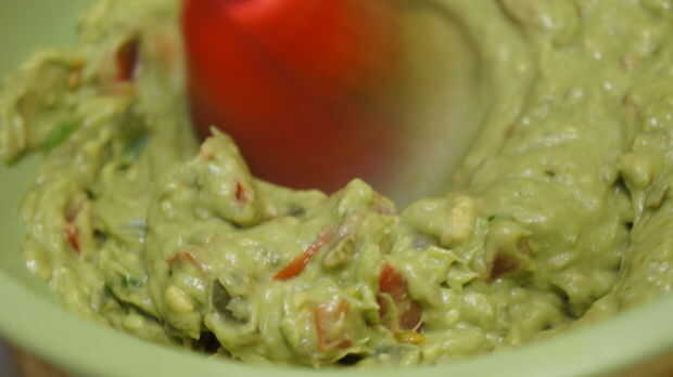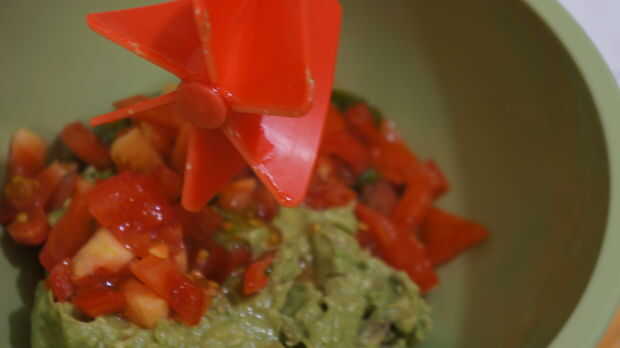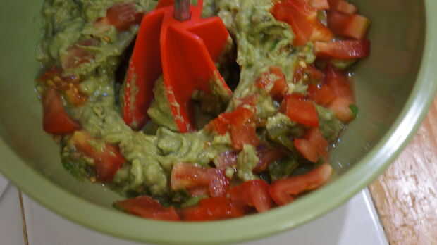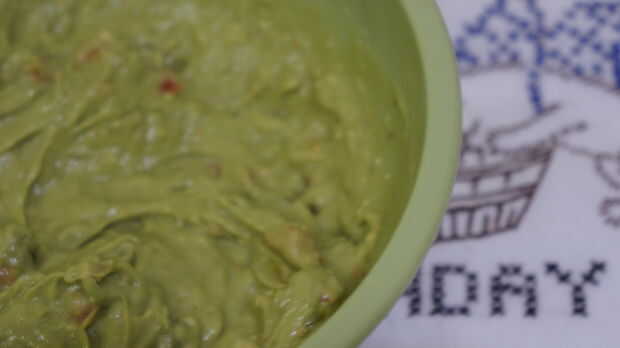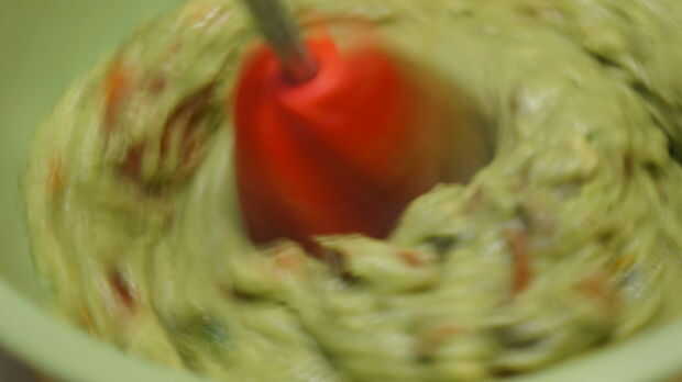 Hacer su favorito dip de aguacate con el taladro con el accesorio de pintura (stir).
