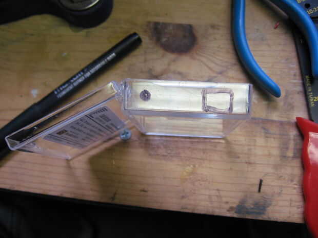 El primer paso es colocar donde quieras los componentes, como soporte de la batería y cambiar dentro de la caja. A continuación identificar y marcar los lugares donde los cables saldrá el caso y donde se colocará el interruptor. Trazado alrededor del interruptor es la mejor manera de conseguir un contorno preciso.
