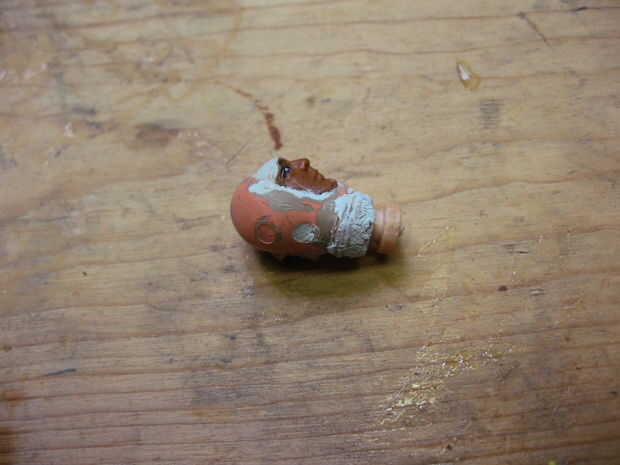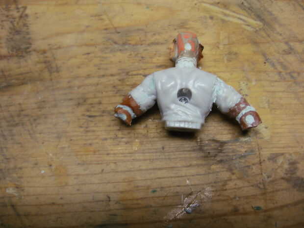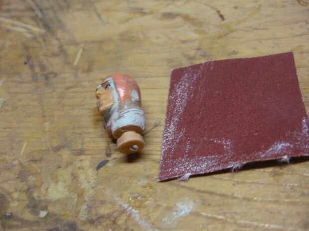 Una vez que la cabeza es en el torso habrá algunos huecos que deben llenarse para cambiar a Satanás de una figura de acción mutilado en un bodegón escultural. Ejemplos de estos serían huecos alrededor de los injertos faciales, articulaciones de los brazos, lagunas alrededor del cuello, daños a la cabeza del proceso de ajuste y vacíos en los bordes del torso. Llenar todos estos con masilla epoxi y arena cuando endurecido. Como con los cráneos que tenga que repetir este proceso un par de veces para conseguir los agujeros llenados completamente. Una vez listo lijar con lana de acero fina.