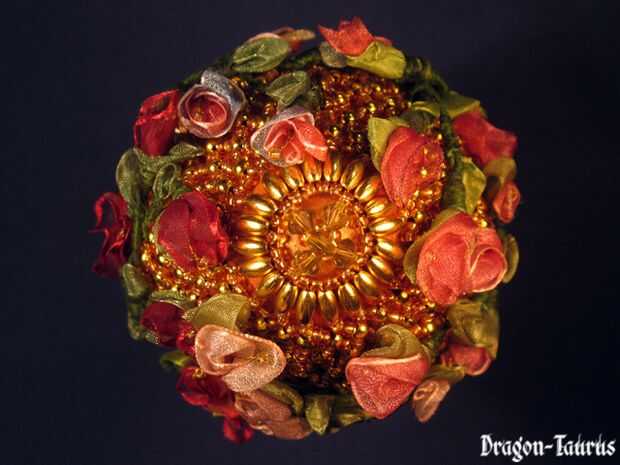 rosas, rosas sólo - un recuerdo del verano. Con orgullo puedo decir que es uno de mis mejores trabajos. Frente, primer plano y la vista superior. Cintas de organza, cristal y bolas de plástico en base de madera torneada y pintada.