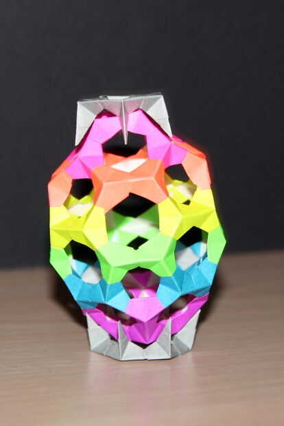 Para hacer una base, simplemente tomar seis unidades (12 triángulos) y hacer un hexágono fuera de ellos. Los dientes expuestos mantendrá el huevo caiga.