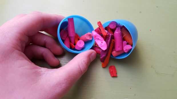 Método alternativo: como la foto de arriba, simplemente llenar un huevo con lápices de colores, colocar en un frasco y microondas durante 6 minutos.
