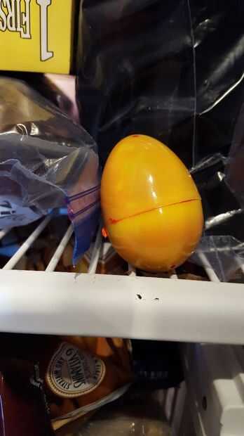 Después de cerrar el huevo con el crayón derretido dentro, ponerlo en la nevera o el congelador para un par de horas. Una vez que ha fijado el crayón, pop el huevo abierto y saque su nuevo huevo crayon!