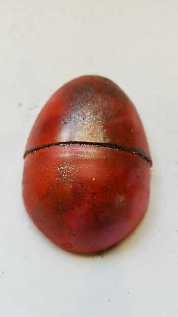 • Tomando la base menor de un huevo de plástico y tirar de la parte superior, hacer una base/manubrio cuando para colorear.