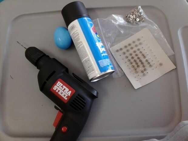 Huevo de Pascua de plástico Pintura en aerosol (elegí negro plana) Tornillo-detrás picos (disponibles en tiendas de manualidades o ebay) Taladro Pedacito de taladro del tamaño del tornillo Marcador permanente (no fotografiado)