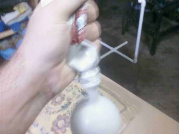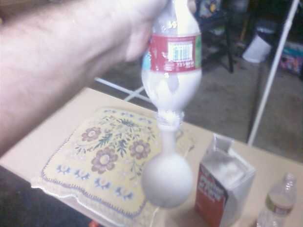 Mantener el globo en la parte inferior. Con la otra mano apriete la botella como un tubo de pasta dental y salir tanto como sea posible en el globo. Cuidado, puede rasgar el globo en el cuello y que tendría que volver a empezar.