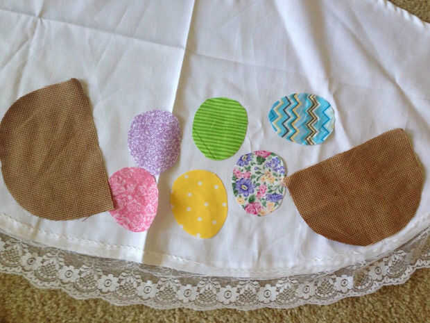 Para cada tira de 4" del patrón de algodón se recorte 2 huevos idénticos. Los huevos total tienes es 6 y cada uno será 2 piezas. Hacer los huevos un poco más que quieras ya que va a perder algunos de su tamaño debido a los márgenes.
