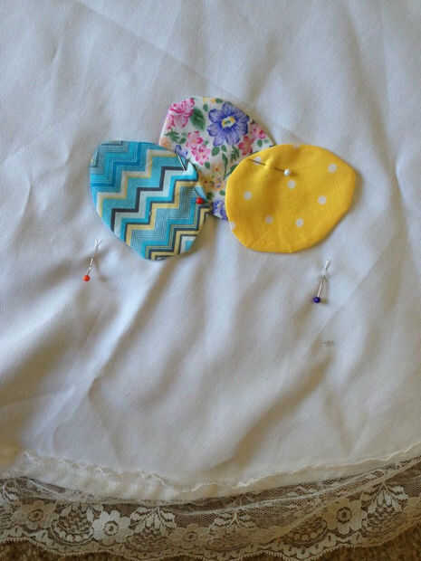 Decida donde las cestas estarán en su delantal. Asegúrese de que están incluso en ambos lados doblando el delantal por la mitad y alineándolos con los demás. Una vez que estés satisfecho con el pasador de cestas en colocar y configurar cómo quieres que los huevos de buscar en cada bolsillo. Cuando han decidido, fijar los huevos en el lugar y tomar las cestas en el delantal (que va ser coser los huevos en su lugar primero) pero asegúrese de dejar un marcador donde querías las cestas para ser.