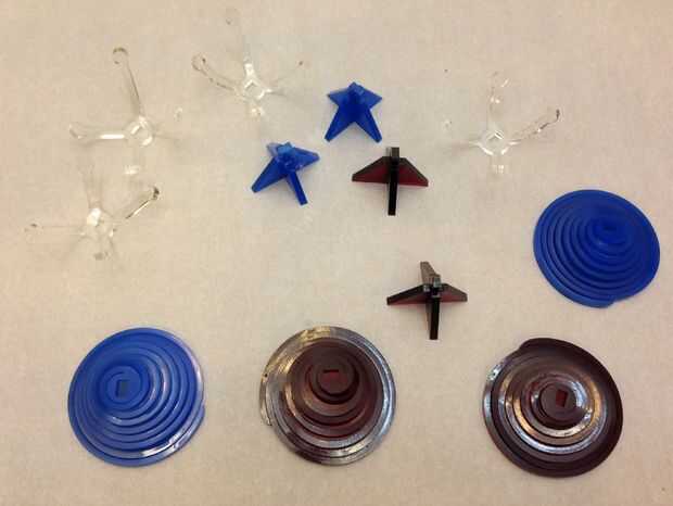 Temporalmente, armar una base. En la imagen puede ver la espiral plana sentado encima de la base. Lugar a la espiral sobre el calentador de tira de acrílico. Girar 45 grados sobre cada 30 segundos para que usted puede calentar la espiral entera (el calentador de tira solamente calienta una tira estrecha a la vez). Una vez que la espiral es muy flexible, coloque en la base y presione el borde exterior de la espiral en la superficie de la mesa. Si el acrílico no es caliente poco el borde exterior no permanece en el nivel de tabla. Si no te importa algunos dedos tostado, puede recoger el conjunto y tire el borde exterior de la espiral por debajo del nivel de la base. De esta manera si se retrae cualquiera seguirá siendo lo suficientemente largo. La espiral se comportará como un resorte débil así pasa nada si la espiral es ligeramente más larga que la base, como el peso de un huevo mantenga pulsado.