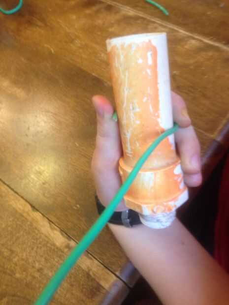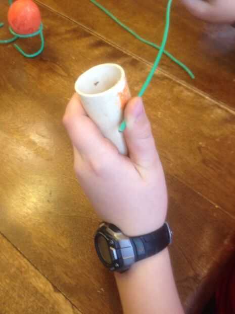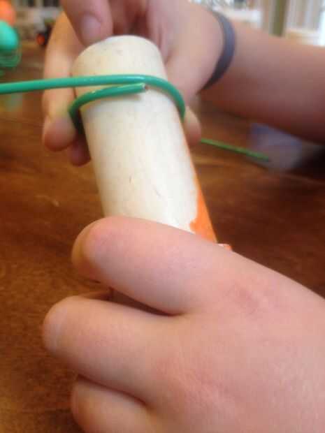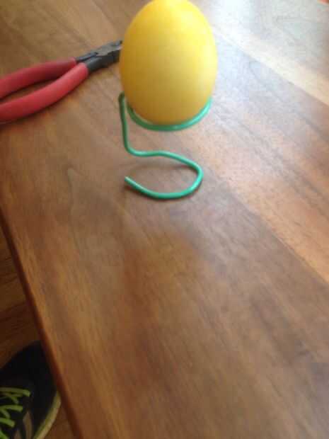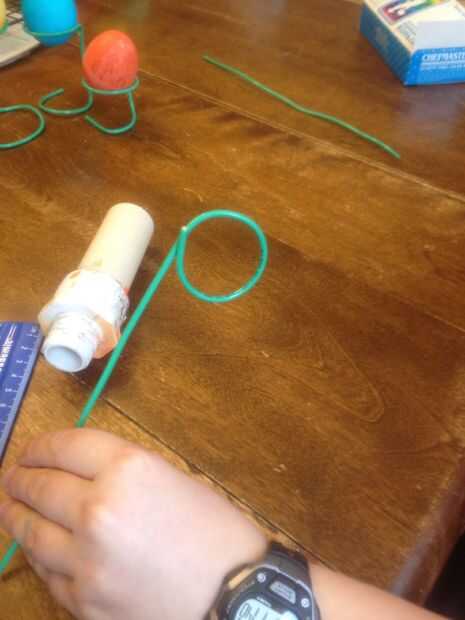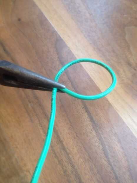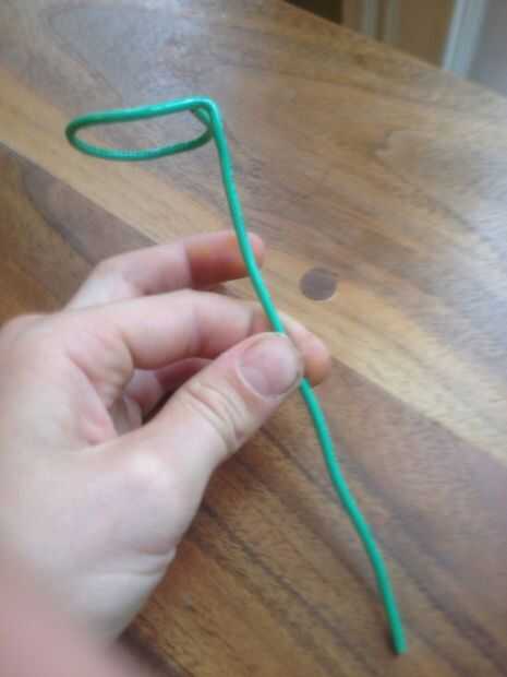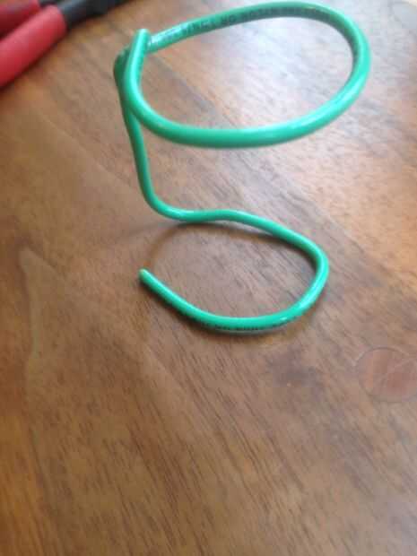 Envolver el cable una vez alrededor de la espiga o tubo de desecho. Mantenga fueron los cables de conexión y curvan hacia abajo. A continuación, utilice la parte inferior de la curva y la pieza con la mano. La base no es un experimento a ciencia exacta. :)