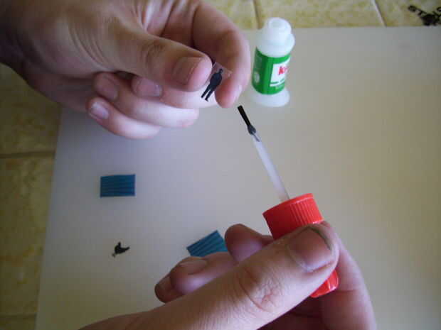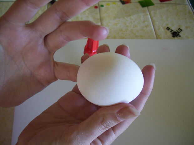 El proceso básico es: aplicar pegamento a la imagen. Equilibrar la imagen de su dedo, meter el dedo en el huevo y presione el lado pegado en el lado del huevo y manténgalo ahí durante un minuto o dos. Usted tendrá que aplicar suficiente presión para mantener la imagen en su lugar, pero no tanto que se fracture. Si crackearlo, sin embargo, pegamento de krazy realmente crea un agradable poco líquido-cáscara de huevo-el vendaje, como nos enteramos.