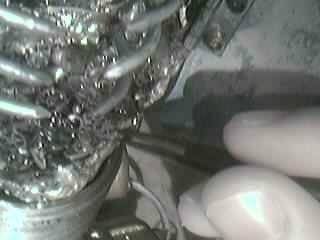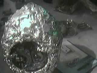 usando lo que marca la pauta para las uñas a tu gusto. ver foto #7. entonces usando una broca que sea del mismo tamaño que el eje de las uñas taladrar los puntos marcados pero no va a través al interior del huevo. ver lugar de pic #8 una de las cabezas de los clavos en cada agujero y golpee suavemente en su lugar. ver la figura #9. luego tomar el alambre de cobre y enróllelo alrededor de las cabezas de los clavos lo que quieras. ver foto #11. después de que agrega soldadura un poco aquí y allá que parecen derretir y listo:).