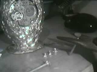 se puede ver en fotos #1-2 que tengo algunas piezas del reloj poniendo alrededor así que voy a utilizar para la decoración. Pegue un engranaje de reloj grande al tallo en la base y uno en el final. tomar y pegar valor reloj al azar de la parte inferior del interior de la foto egg.see #5.
