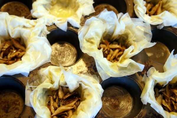 Huevo en una cesta con Setas Shiitake (3 / 3 paso)