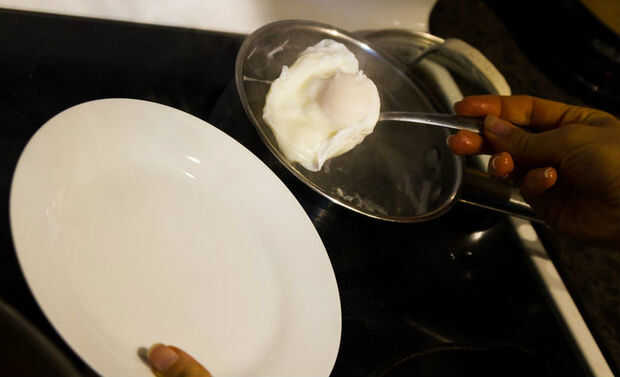 Después de querer aprender a escalfar huevos busqué en línea y encontró que era un procedimiento bastante involucrado. Se hierve agua y vigorosa agitación, añadir vinagre y dejando caer el huevo en sólo la velocidad correcta, el ángulo y el tiempo. S