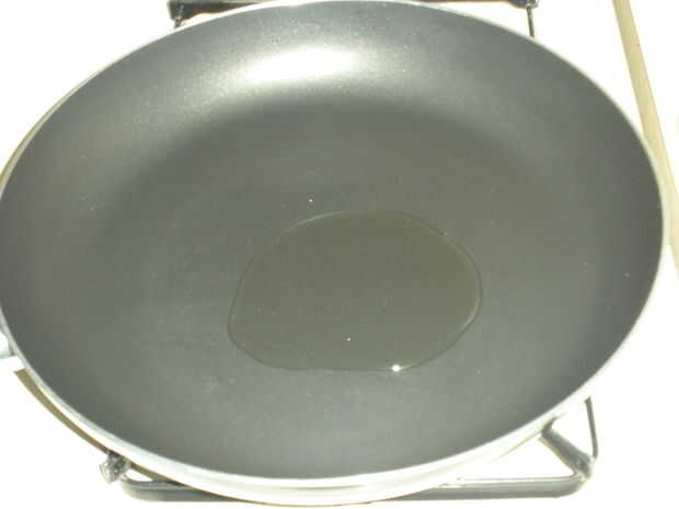 Vierta aproximadamente 2 cucharas de mesa de aceite vegetal en la sartén.